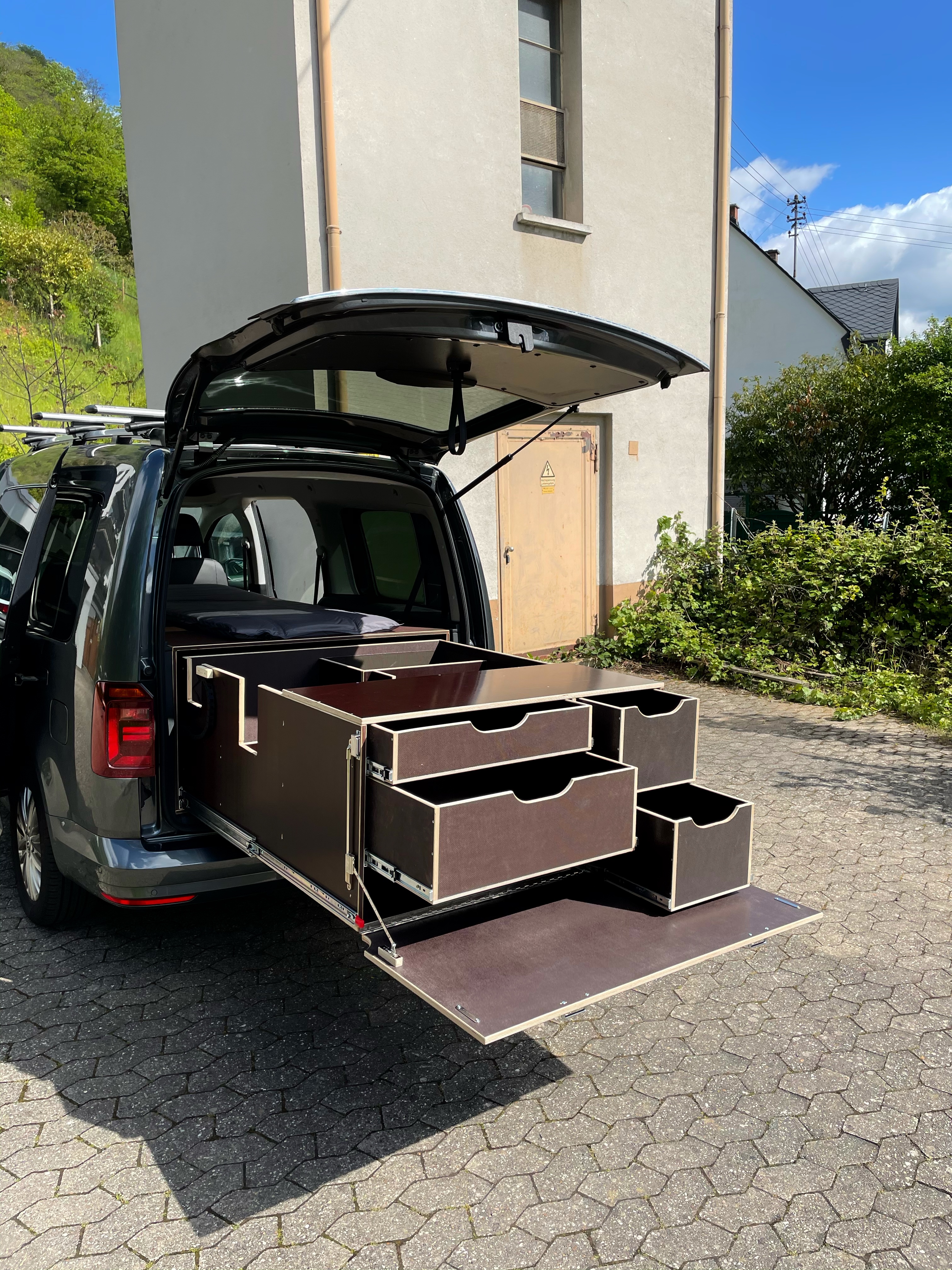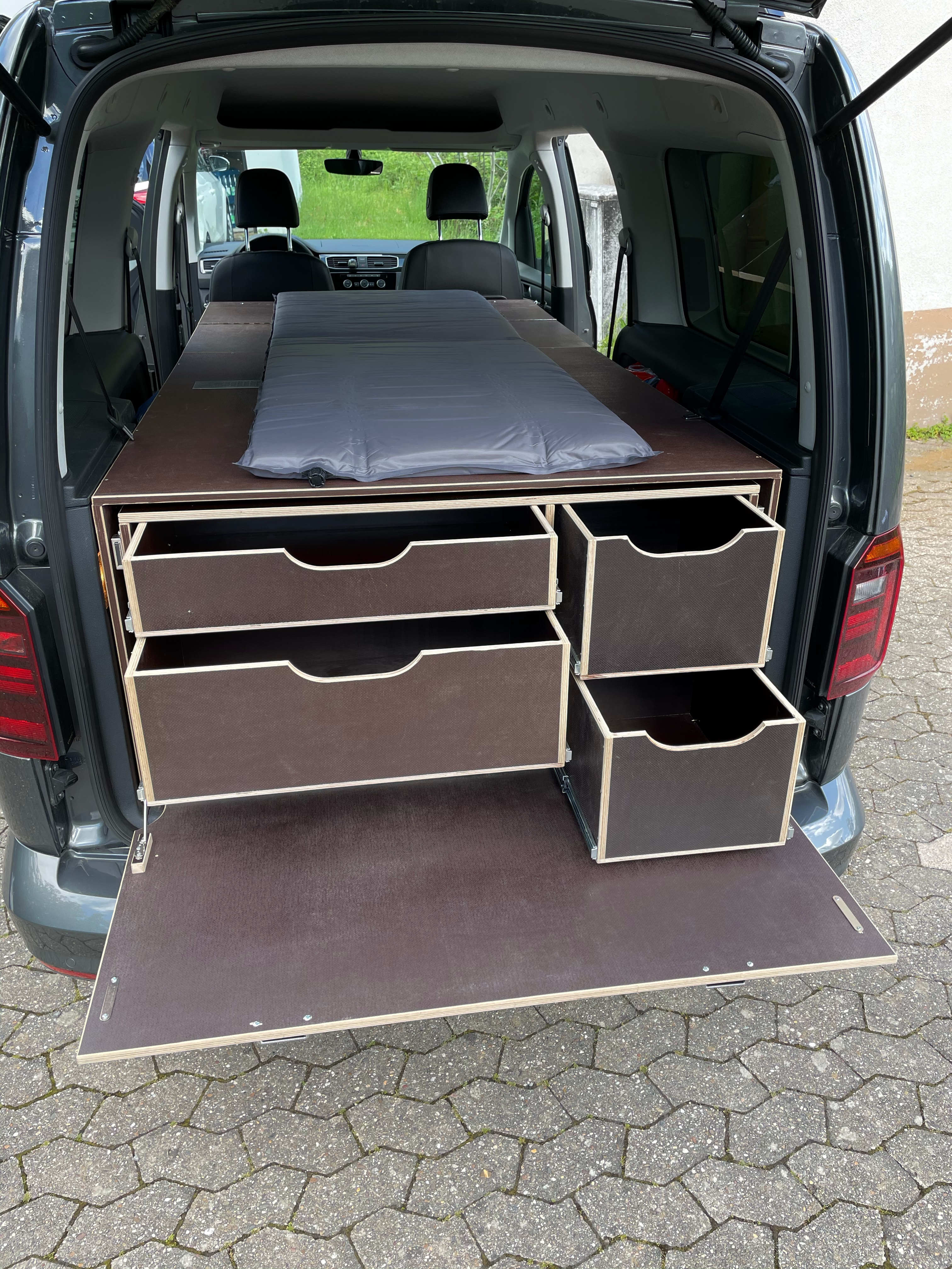 Hier eine interesante Aufgabe: Einbau in einen VW Caddy nach Wunsch und Mithilfe vom Kunden