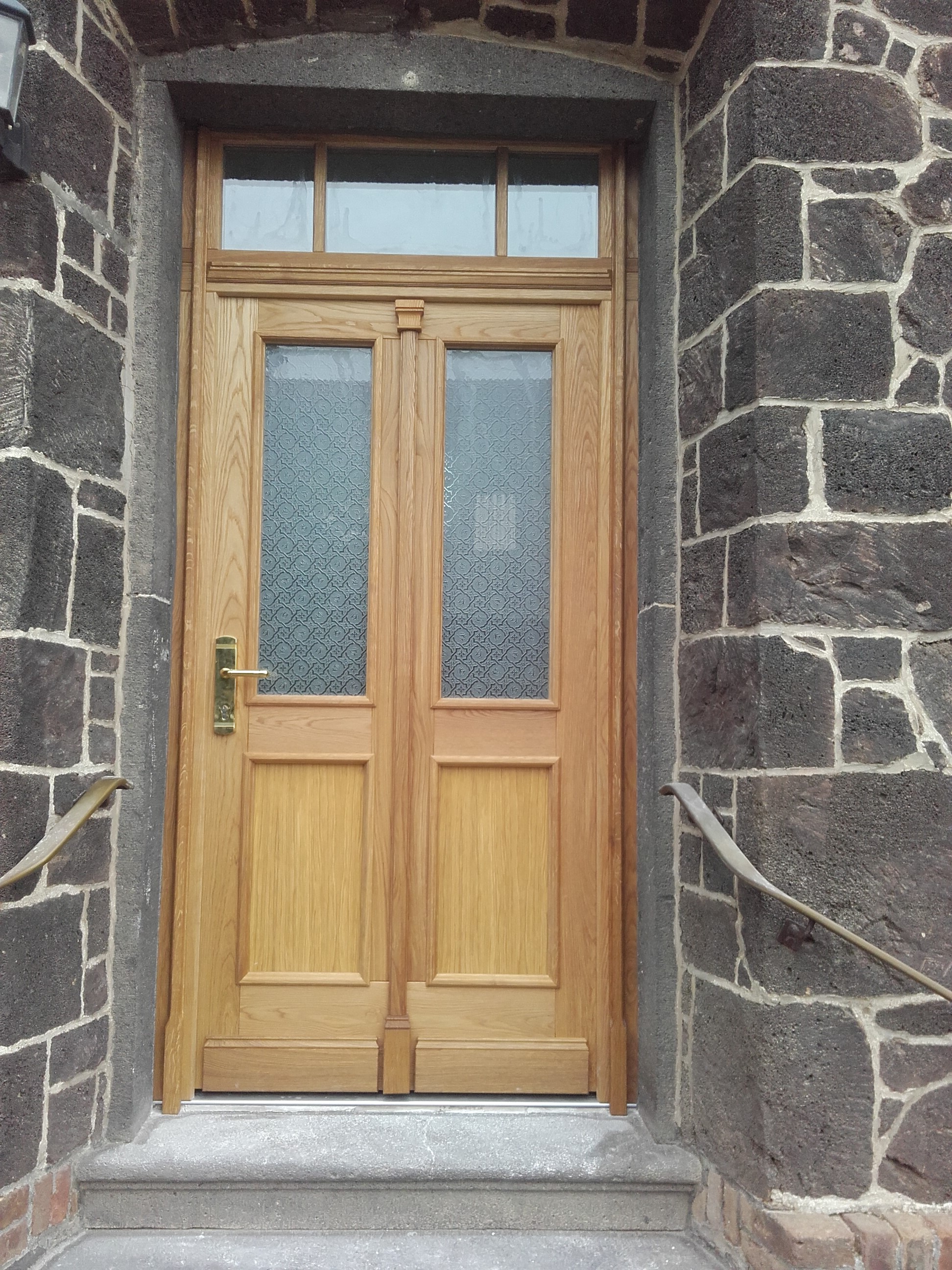zweiflügliges Garagentor aus Lärchenholz Haustür mit Oberlicht aus EichenholzHaustür in Eichenholz, Oberfläche geölt und mit EisblumenglasHaustür in Lärchenholz mit BleiverglasungHaustür in Nadelholz, mit TrendlasurfarbtonHaustür in Eichenholz mit Füllungen und GlasfelderHaustür im RAL-Ton mit einer BleiverglasungHaustür Modell mit Sprossen und Füllungen