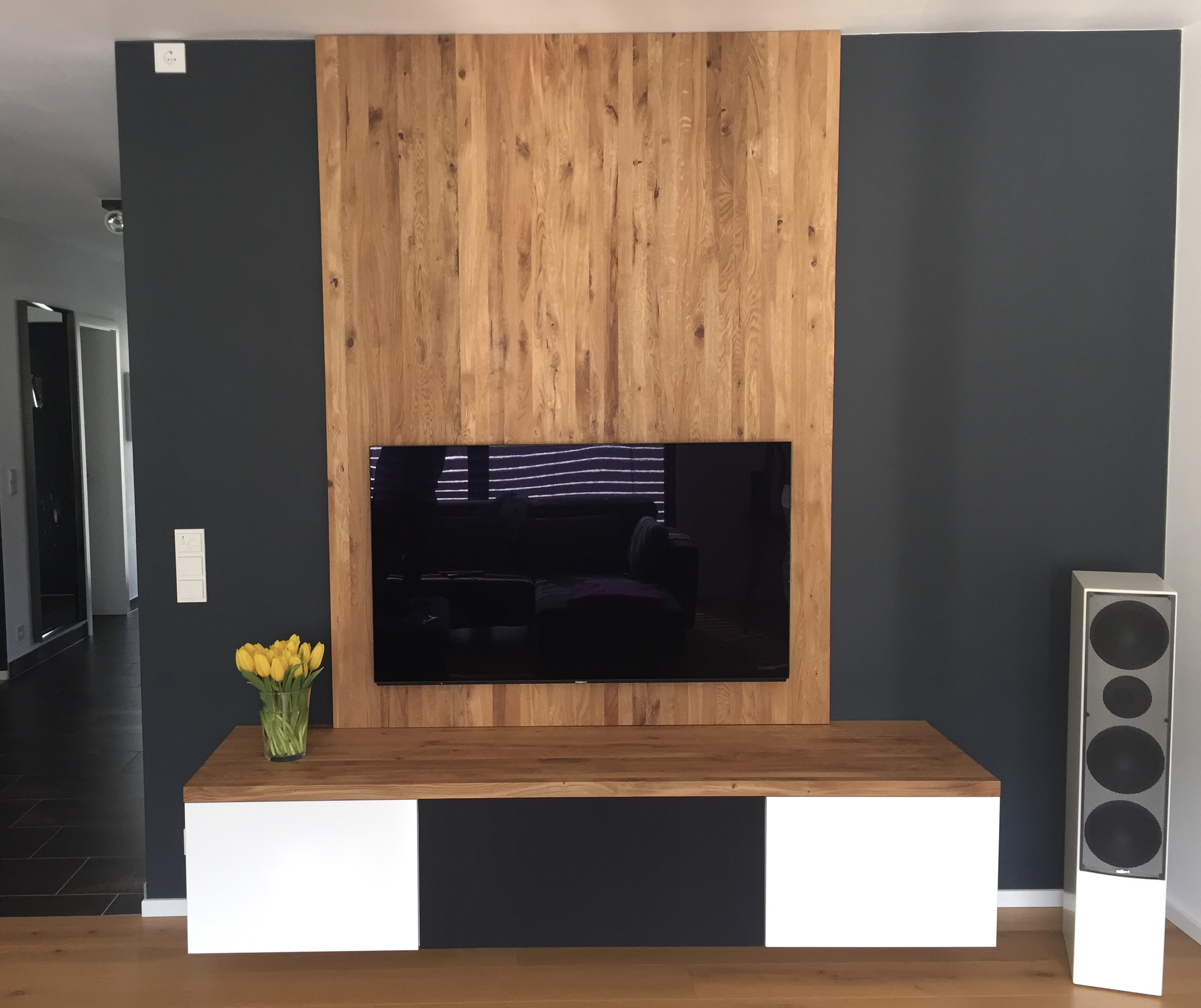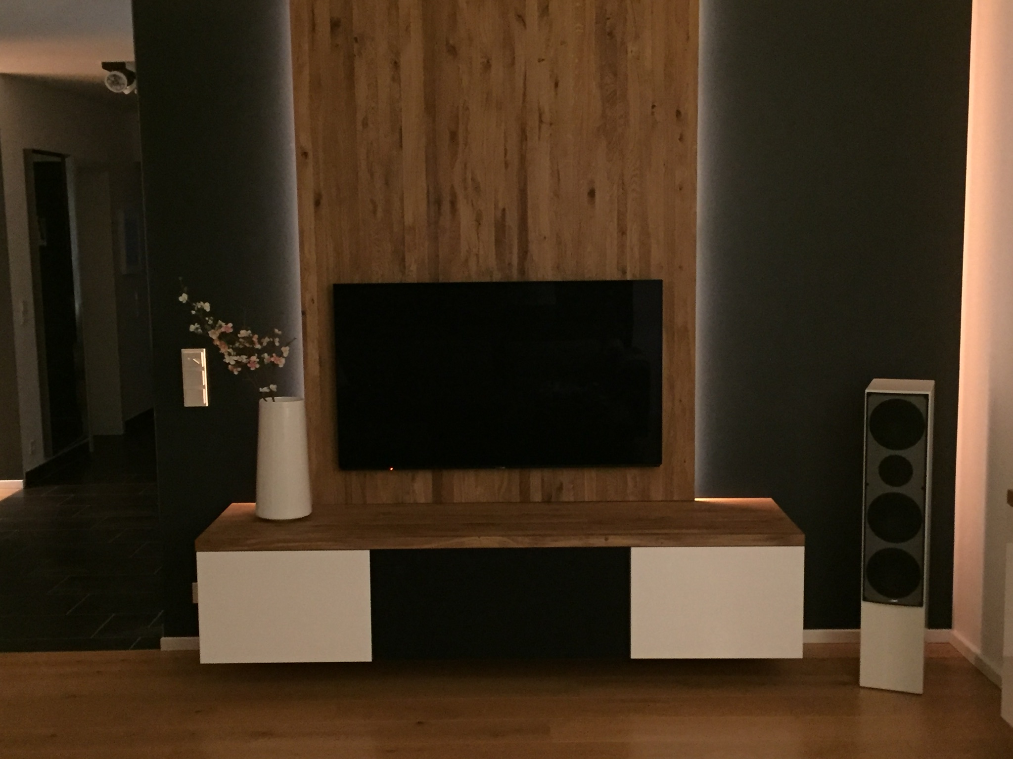 Rückwand für Fernsehgerät mit LED-Leuchtstreichen rechts und links