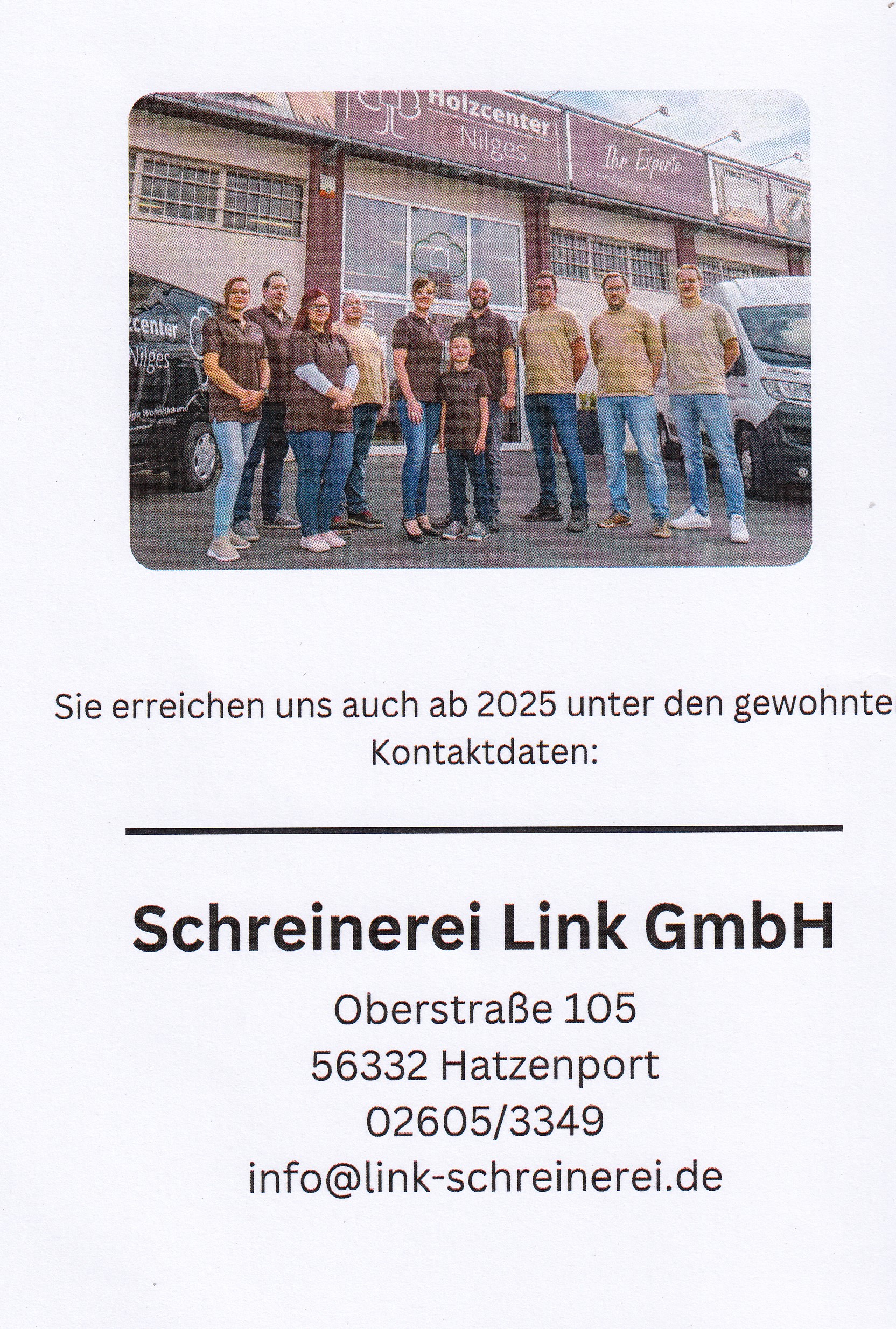 Der Großvater Franz Link gründet 1933 die Schreinerei in Hatzenport. Zunächst mit zwei Mitarbeitern führte er den Betrieb durch die Kriegstage und hatte danach auch Arbeiten zum Wiederaufbau im zerbombten Koblenz. Schwierige Zeiten für die Beschaffung von Material und Werkzeugen.